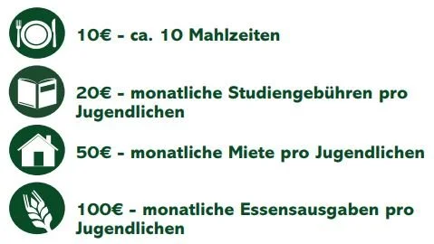 Um euch eine Idee zu geben, wie viel verschiedene Aspekte des Projektes kosten, findet ihr hier einige Beispiele: